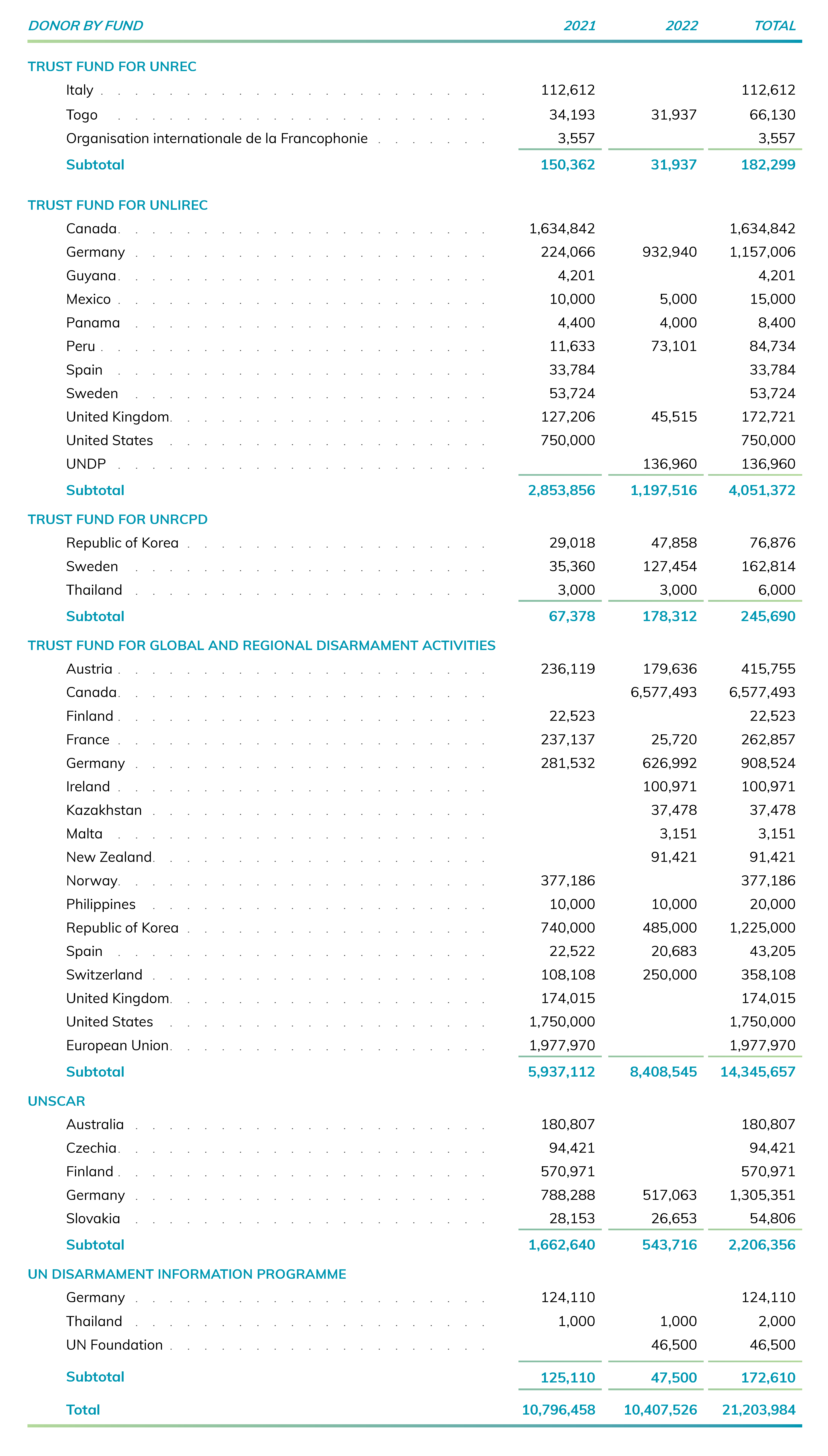 Voluntary contributions to UNODA from 1 January 2021 to 31 December 2022 (in United States dollars)