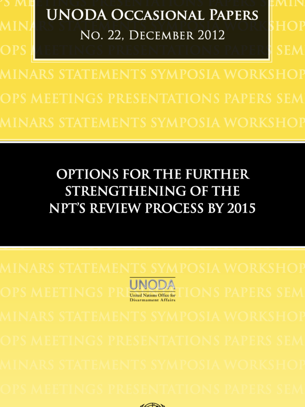 Parties participating in the 2010 Review Conference of the Treaty on the Non-Proliferation of Nuclear Weapons (NPT) decided to defer its consideration of further strengthening of the review process of the Treaty to the next review cycle. Consequently, this issue was addressed at the first session of the Preparatory Committee for the 2015 Review Conference, held in Vienna from 30 April to 11 May 2012. This paper examines the various proposals that have been put forward thus far and that could incrementally improve accountability and efficiency as well as provide greater continuity and substantial savings. This includes smarter use of the time for substantive consideration, on the general debate and early establishment of subsidiary bodies, on moving to digitized records, on the establishment of an NPT Secretariat and the enhancement of participation by non-governmental …